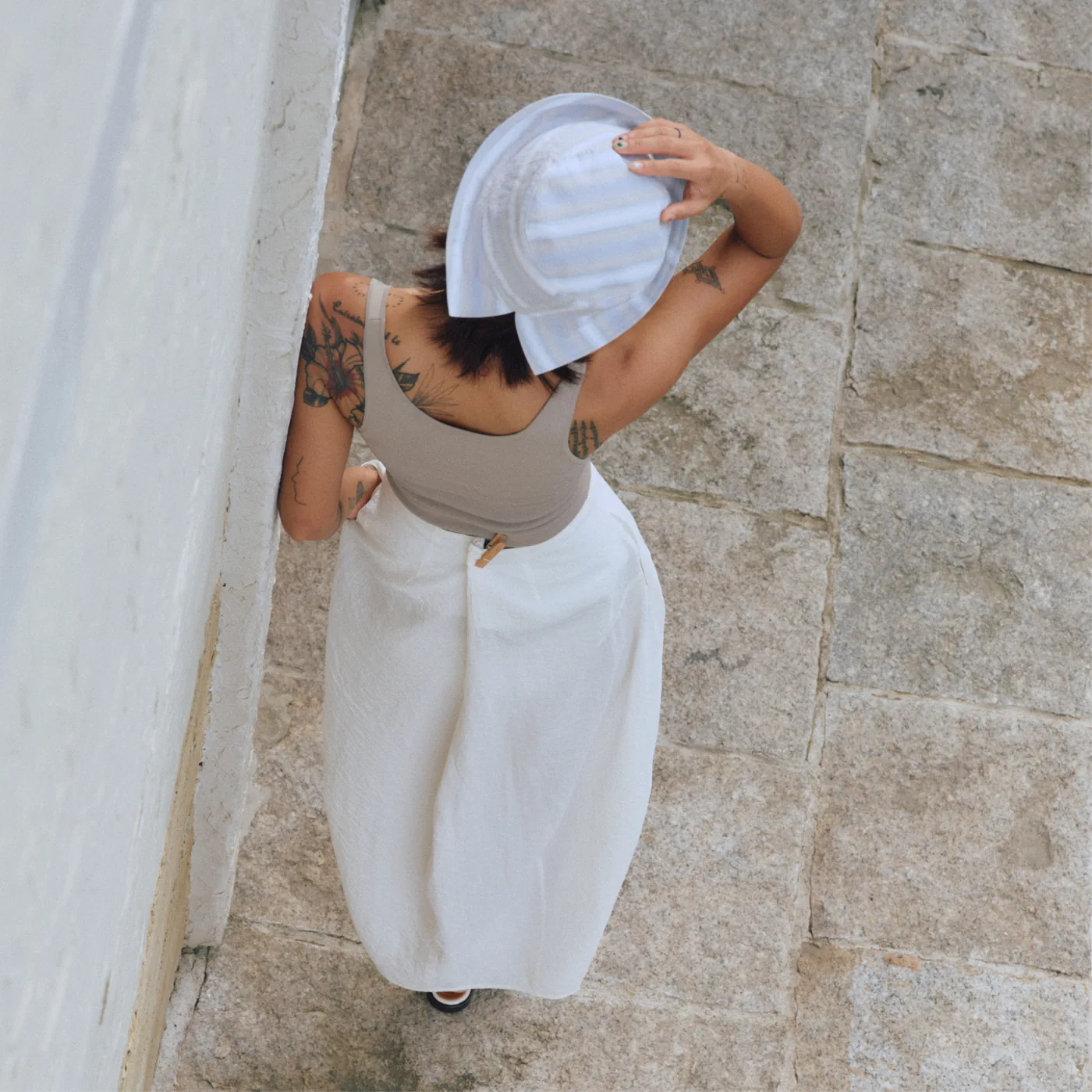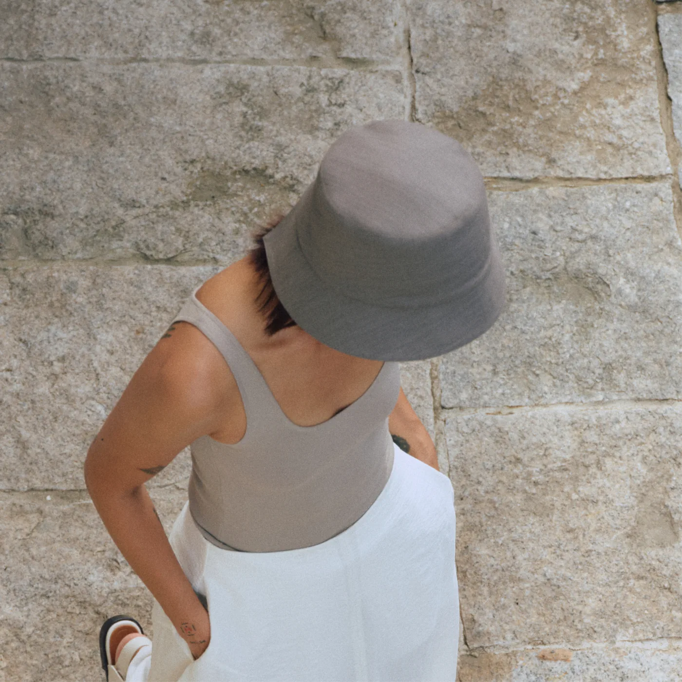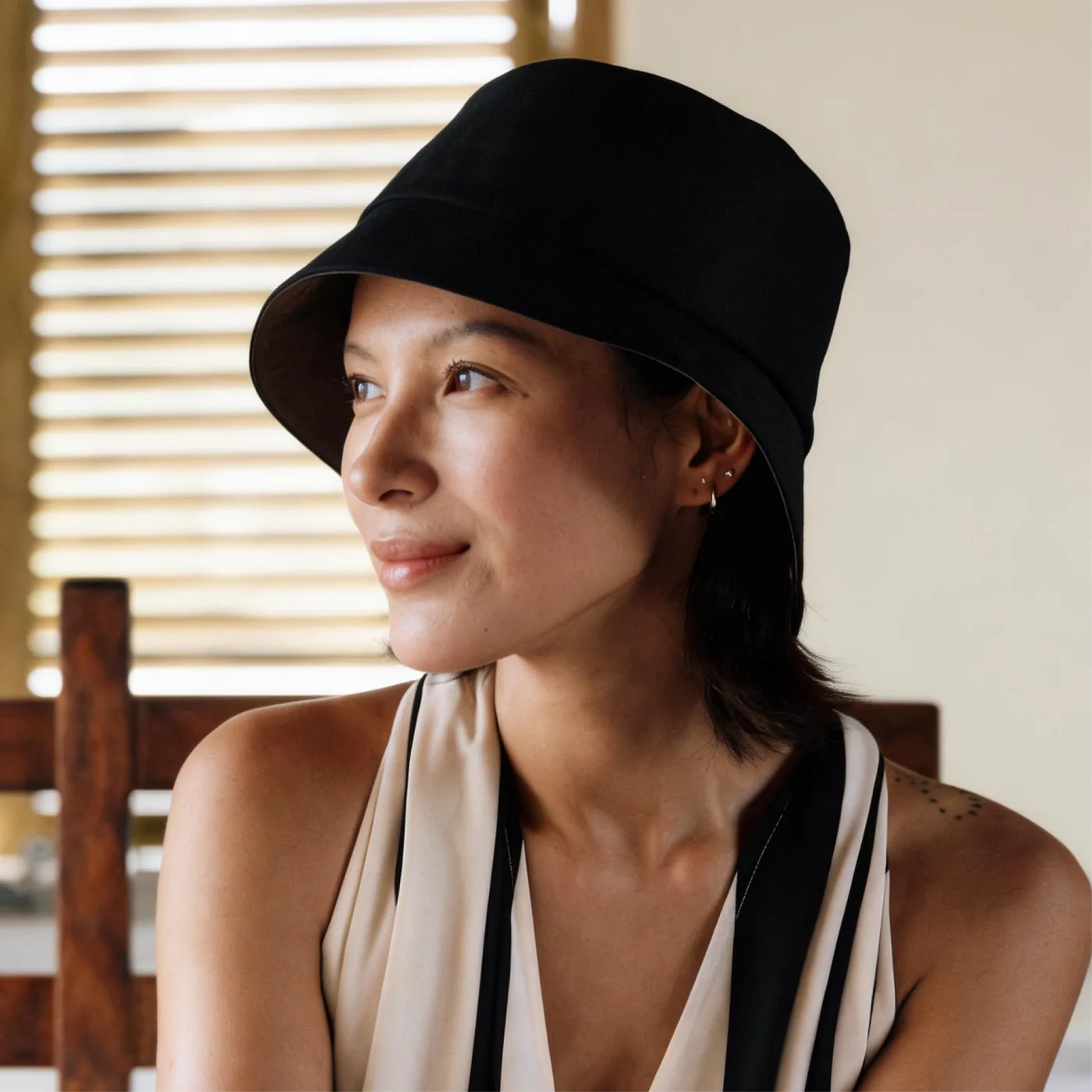 A clean, cylindrical profile akin to a bucket hat. Pairs perfectly with minimalist styles.外观接近直筒帽。整体轮廓干净,适合搭配简化的穿搭结构。