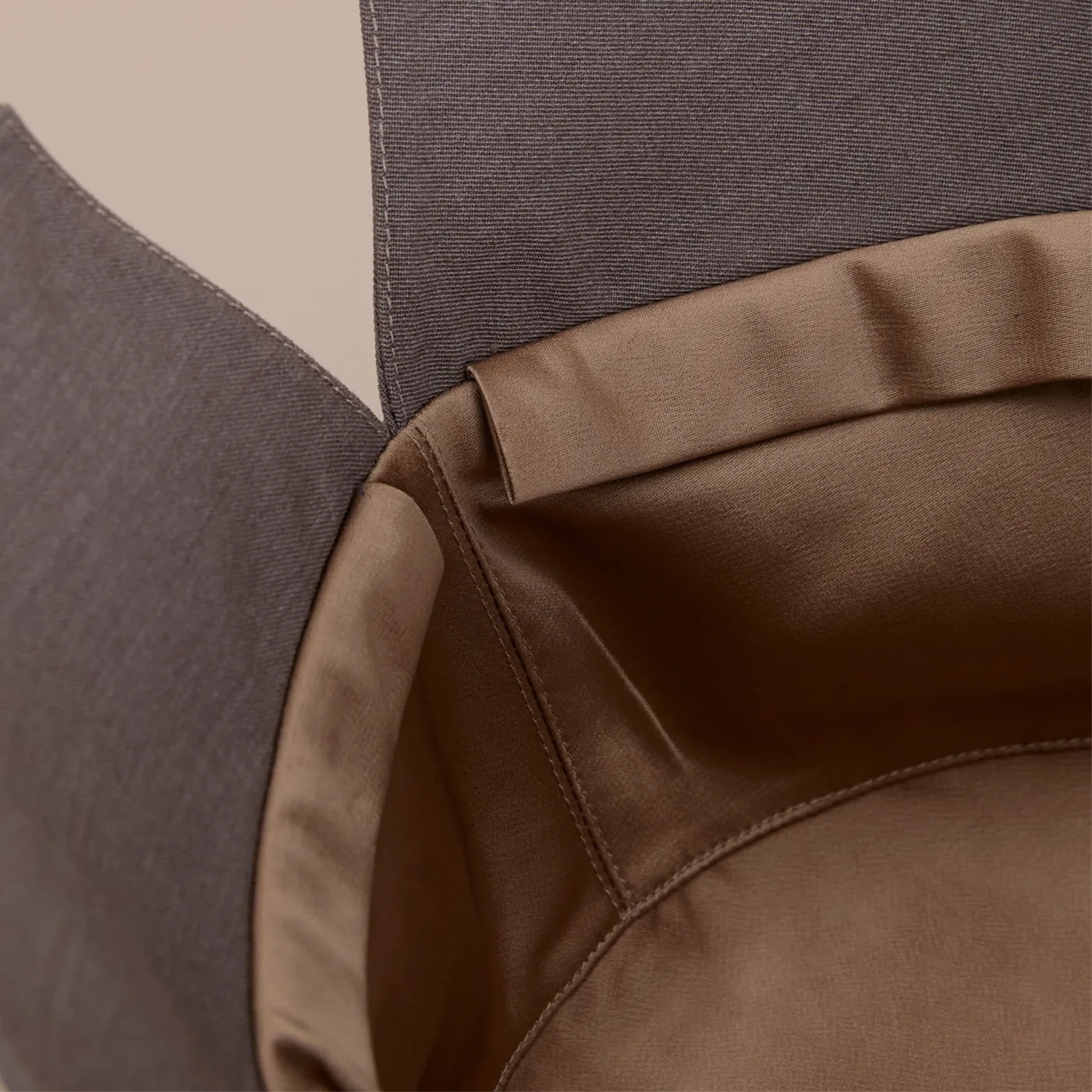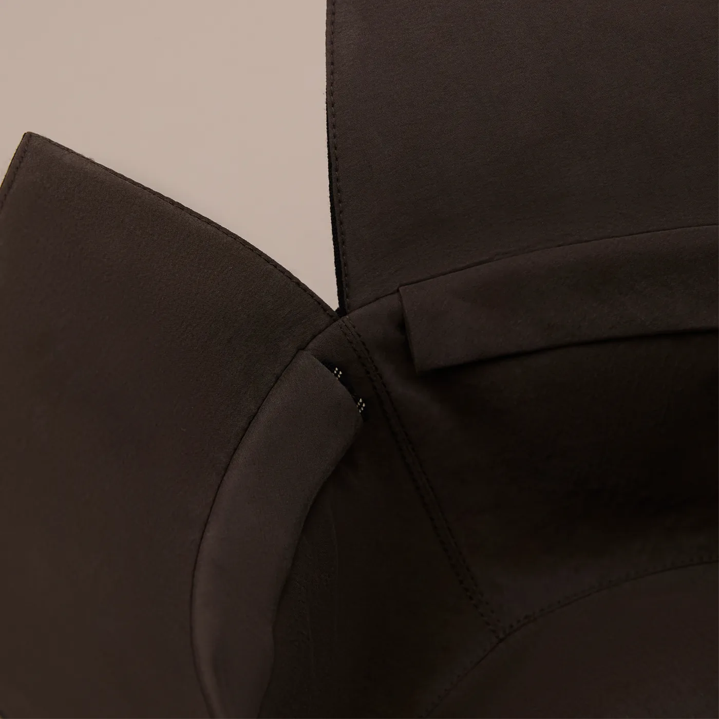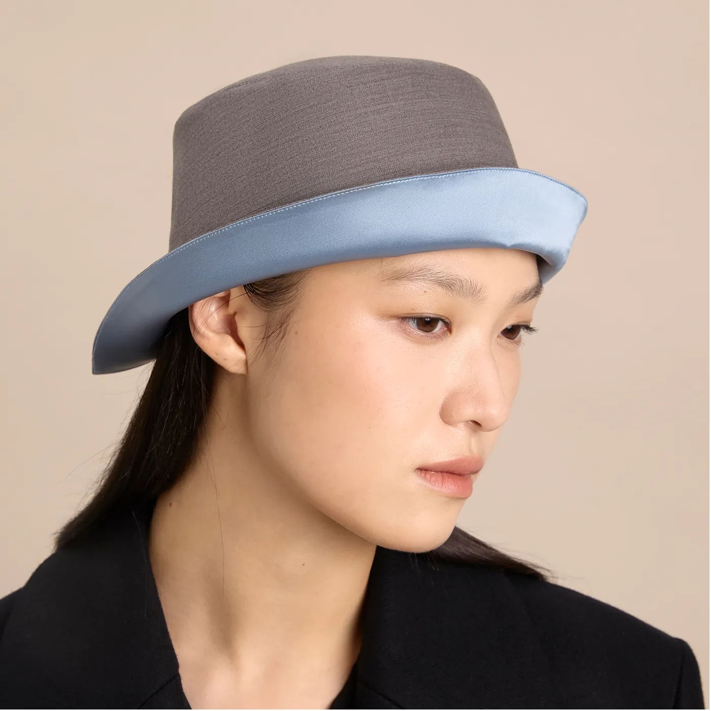Turn the front brim outward to expose the contrasting inner fabric. Adds subtle depth and a hidden "echo" at the back, elevating your look with quiet intention.将前侧帽檐向外翻折,露出内侧帽檐材质。造型层次更丰富,将设计点睛藏于背后,为造型增加"回声"。