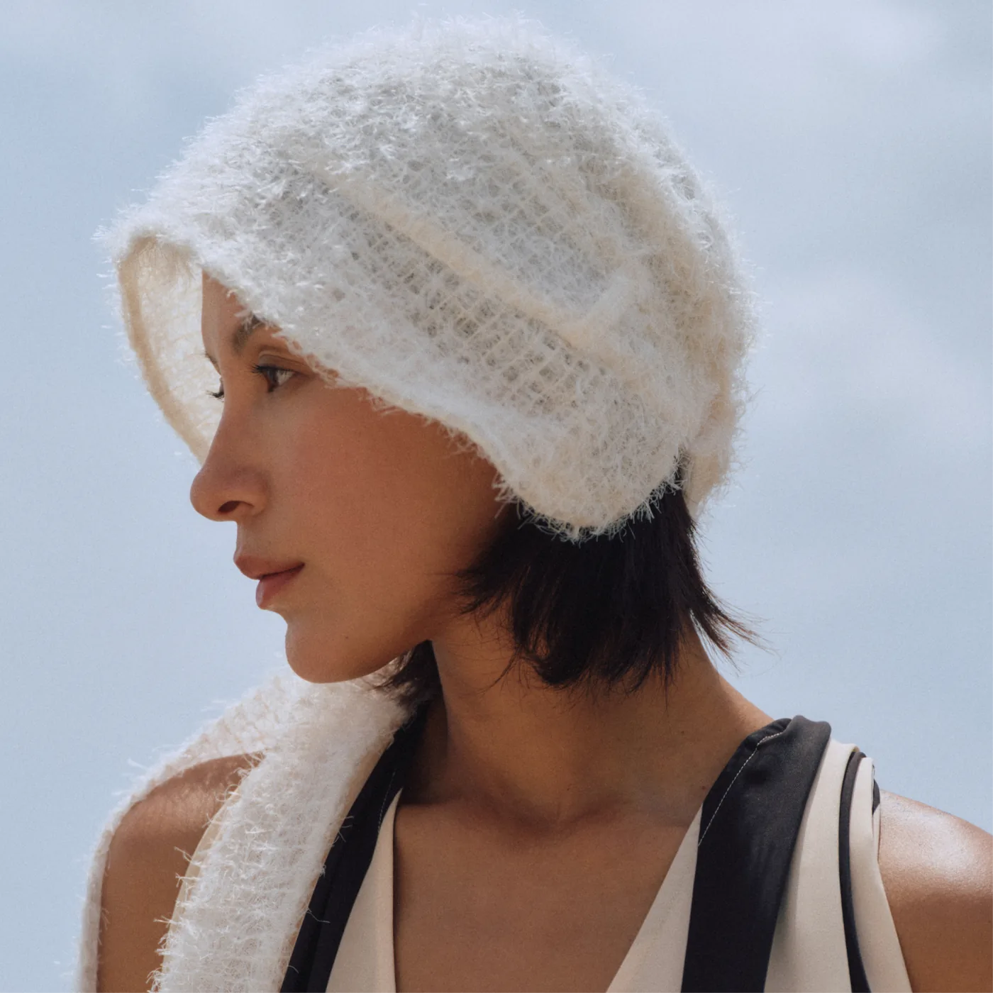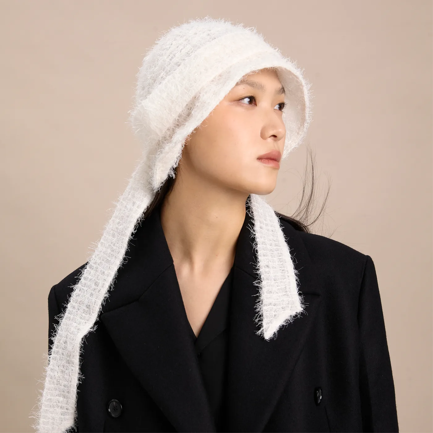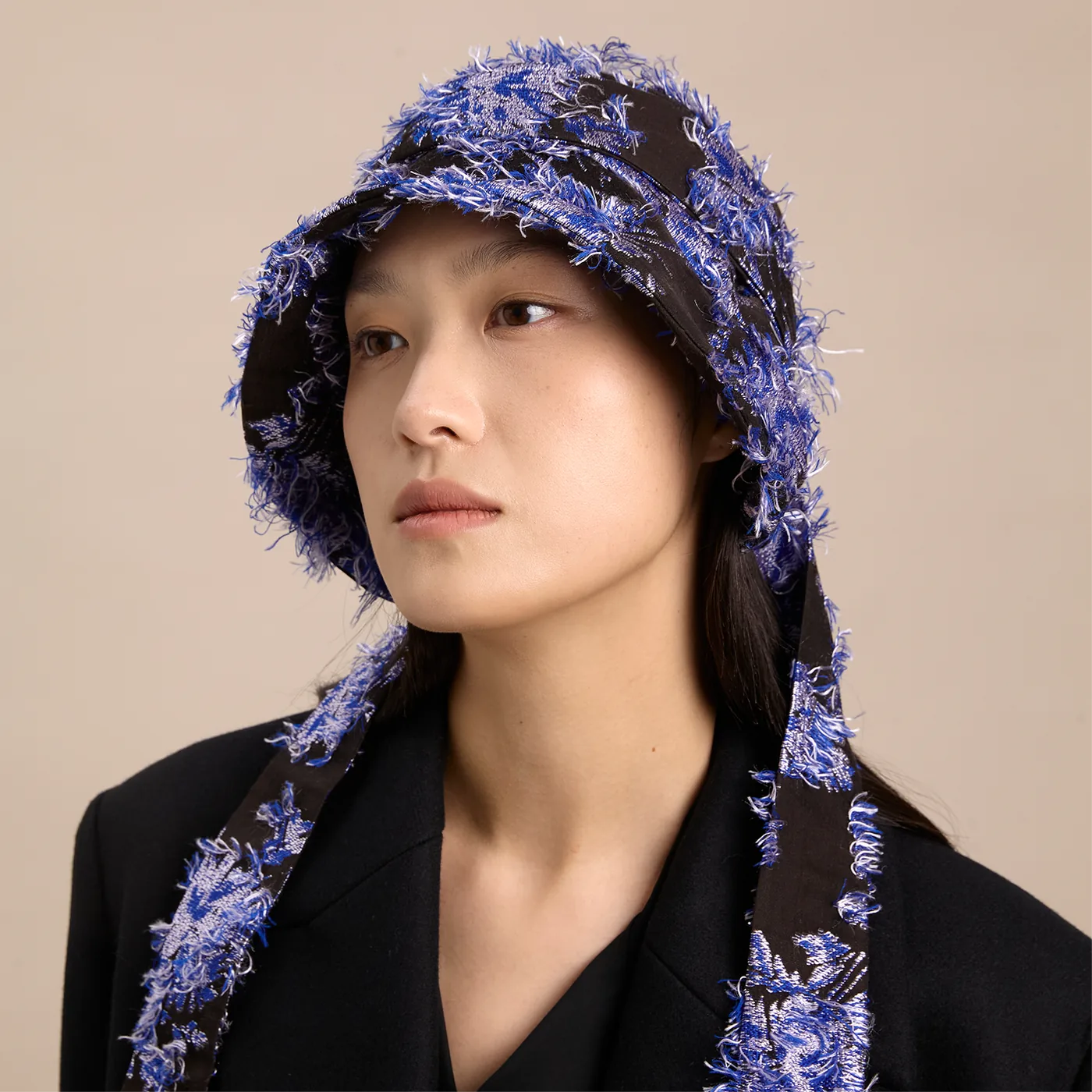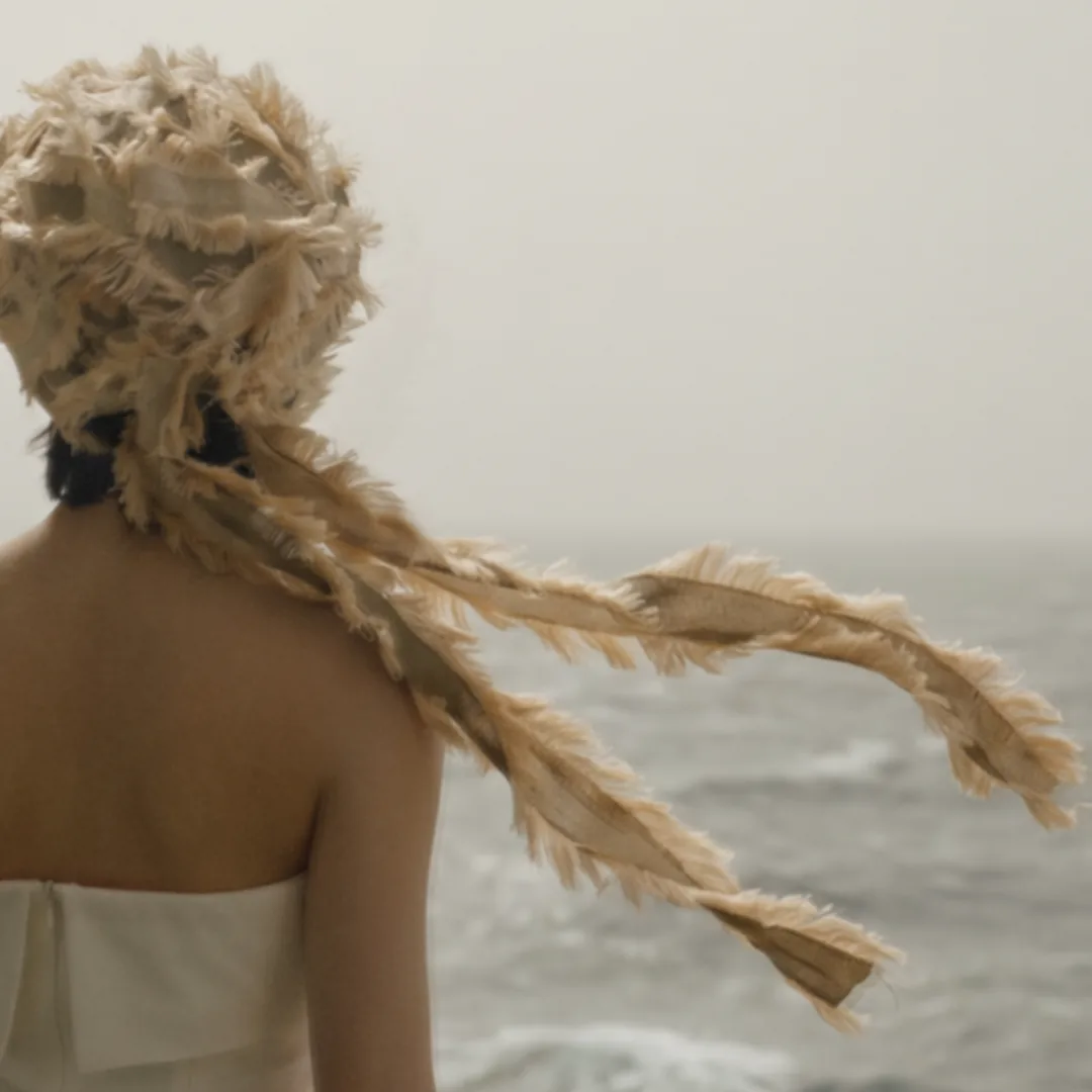 软盆帽型搭配长飘带,像个"边缘玩家",在布料、配饰、服装之间自由游走,把头顶的自由和温柔情绪一路带到全身——解锁氛围感自由。