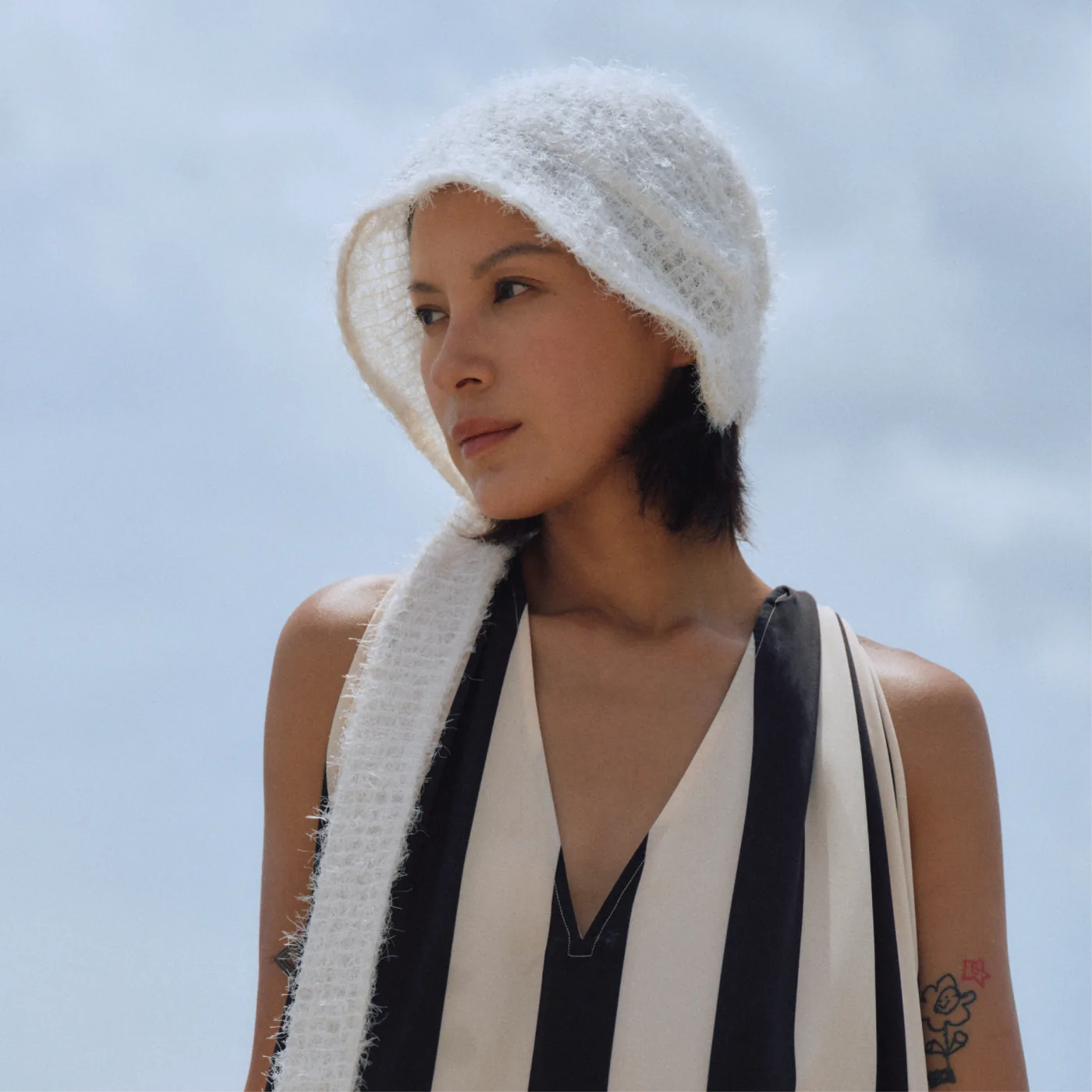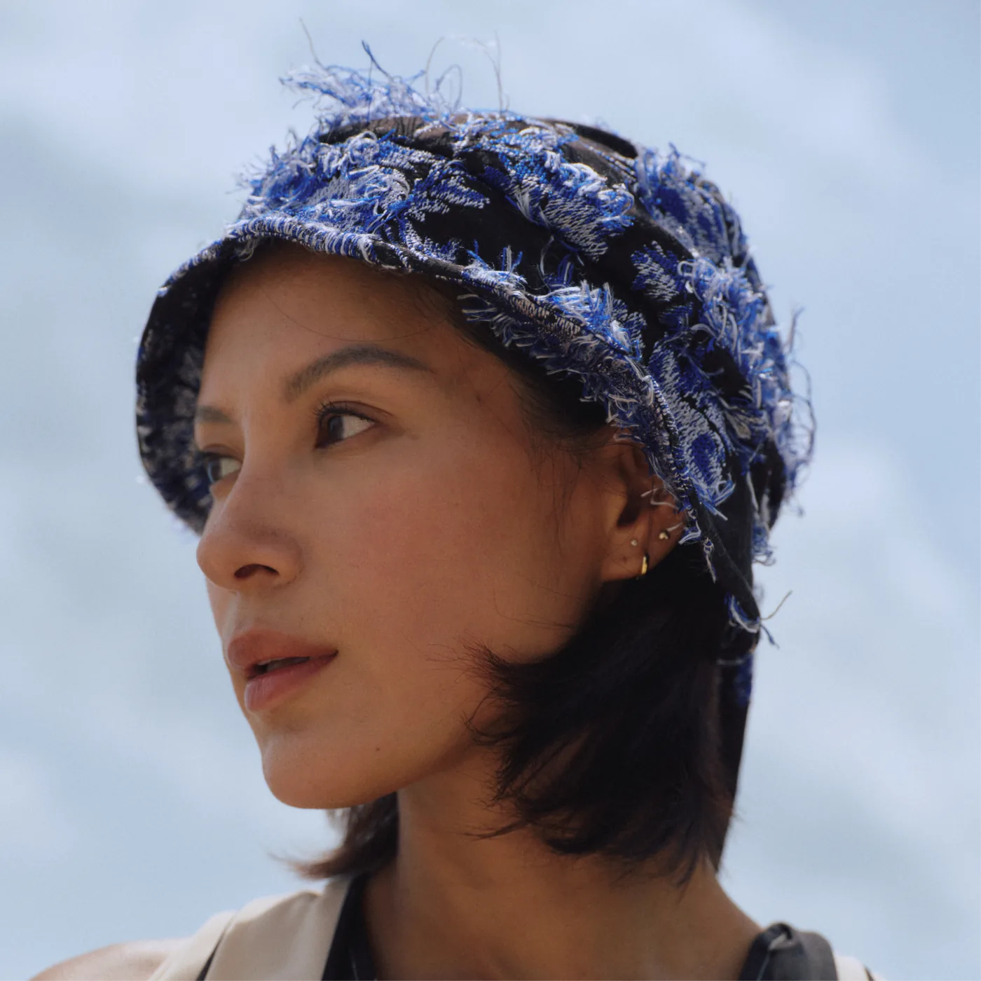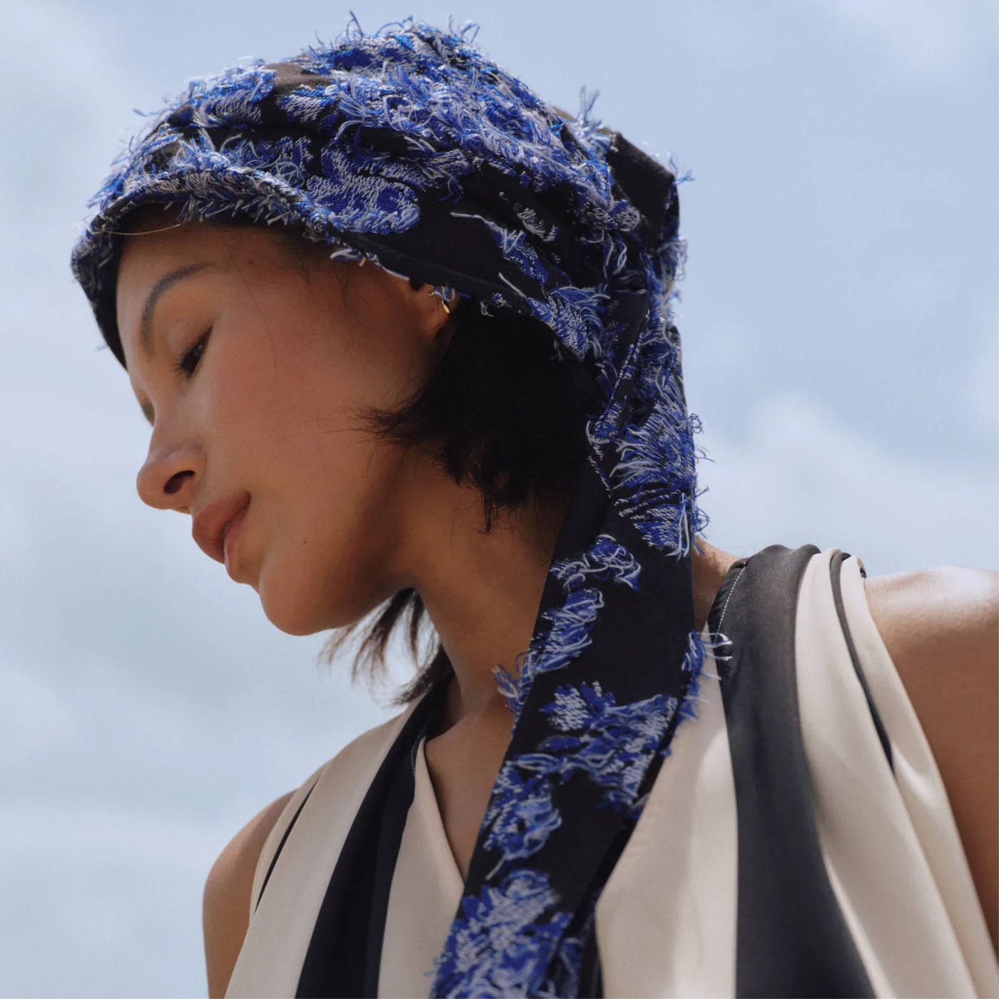 软盆帽型搭配长飘带,像个"边缘玩家",在布料、配饰、服装之间自由游走,把头顶的自由和温柔情绪一路带到全身——解锁氛围感自由。