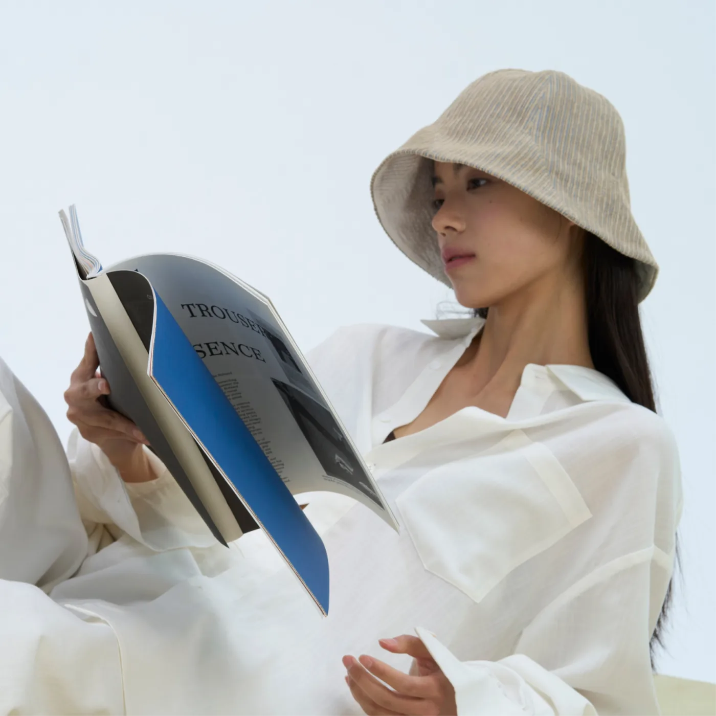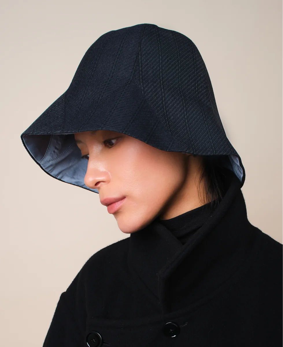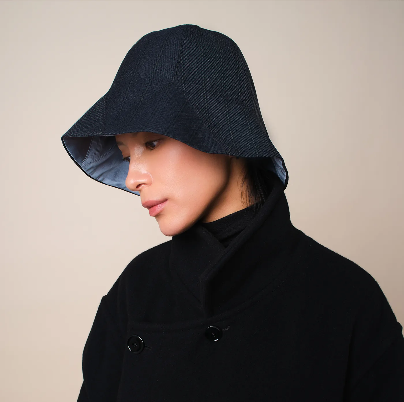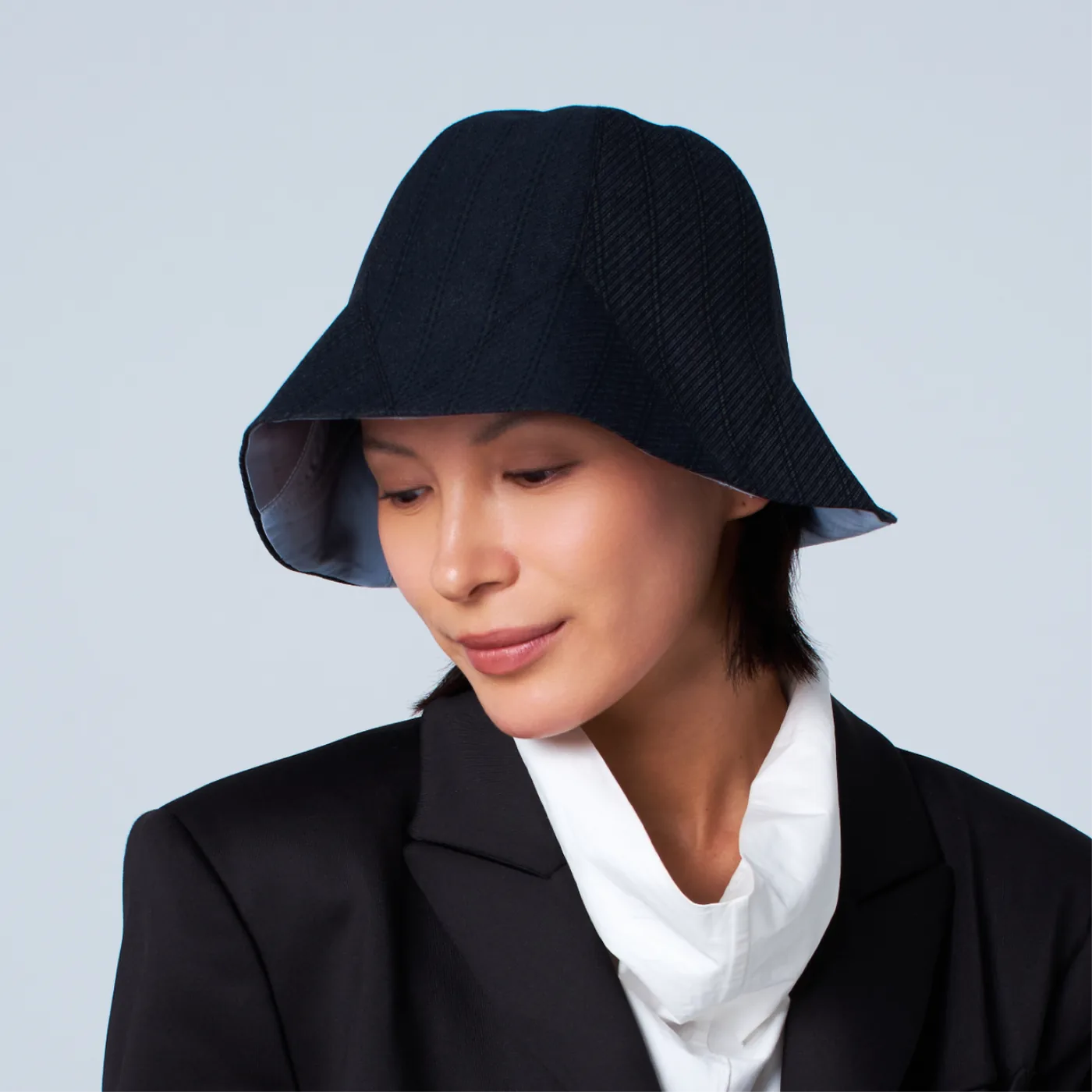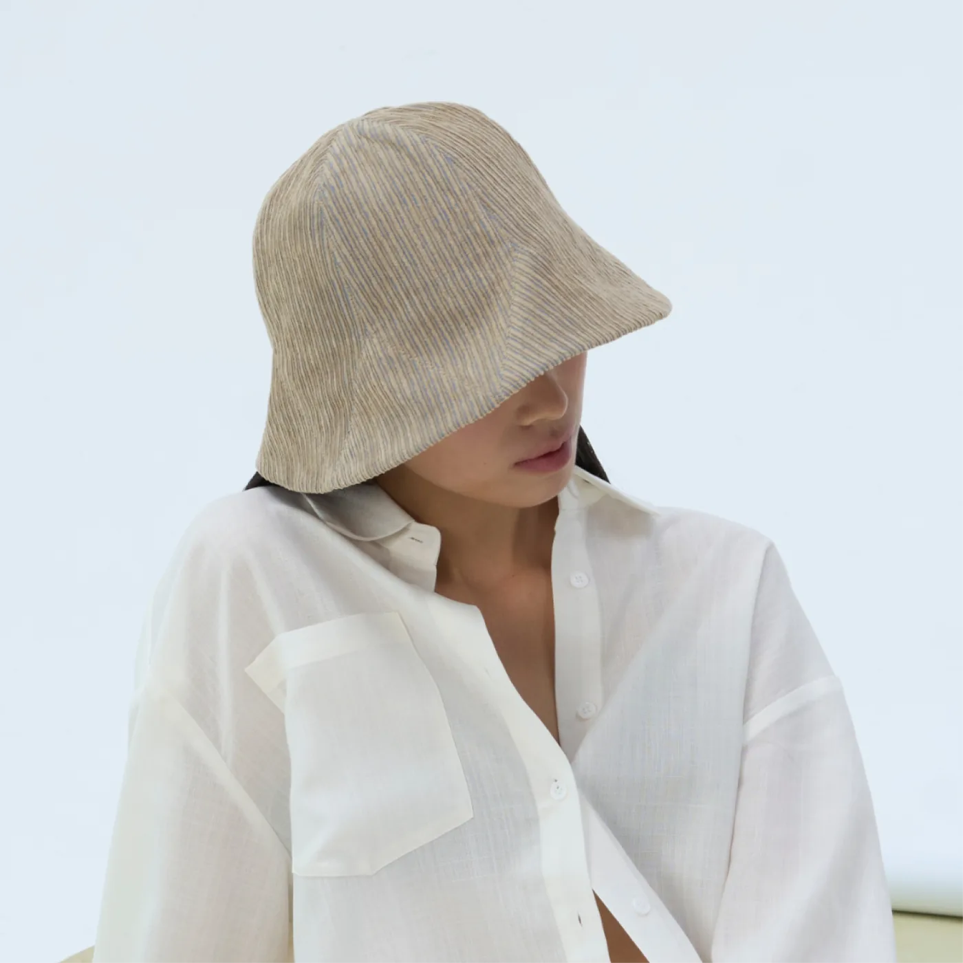 A clean, cylindrical profile akin to a bucket hat. Pairs perfectly with minimalist styles.外观接近渔夫帽。整体轮廓干净,适合搭配简化的穿搭结构。