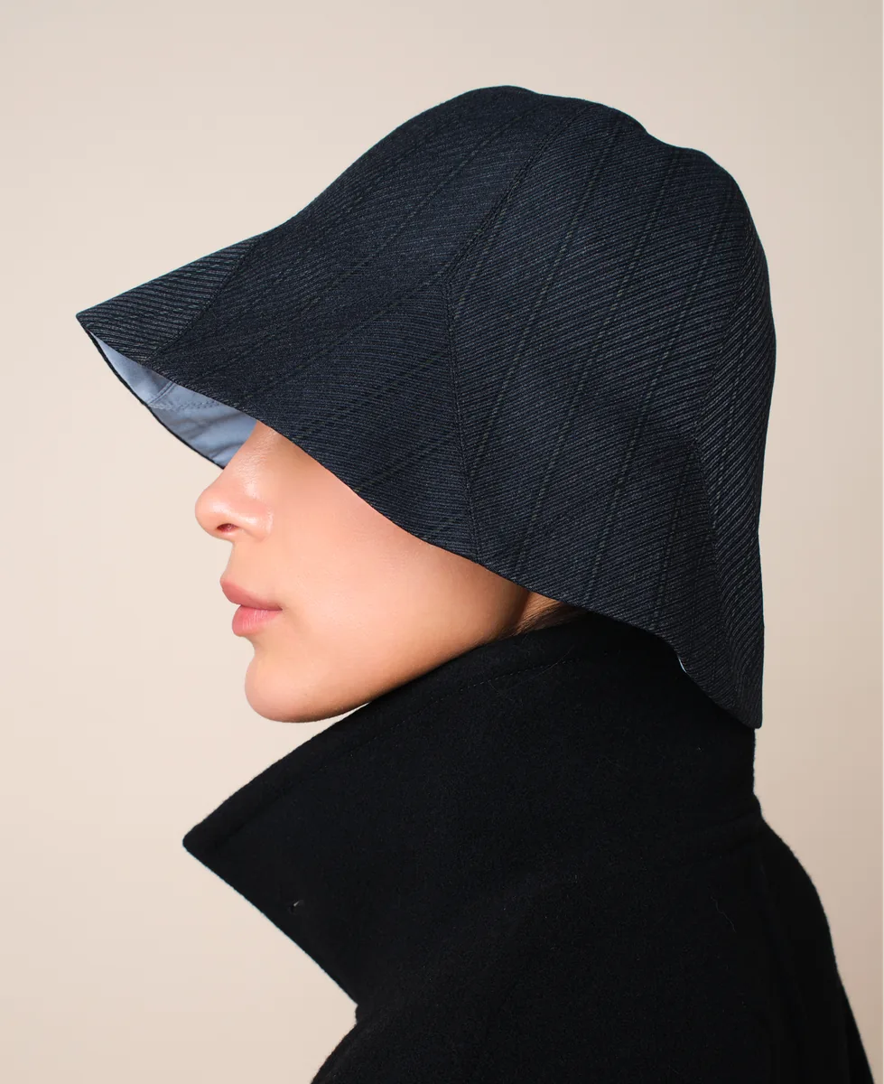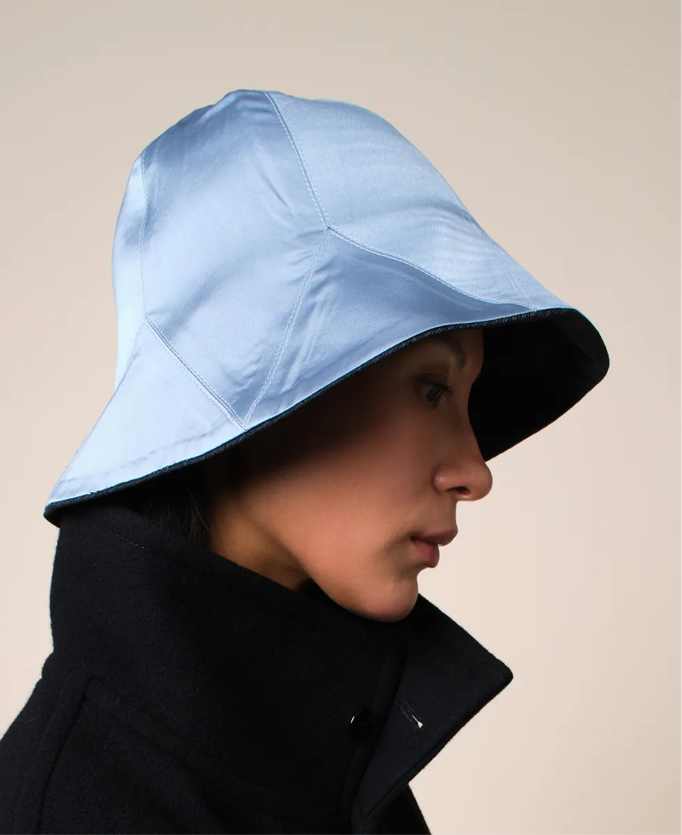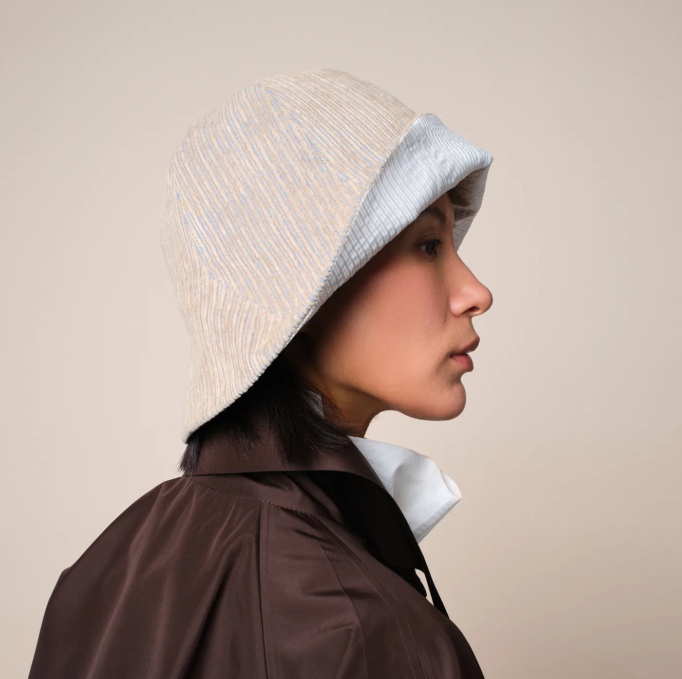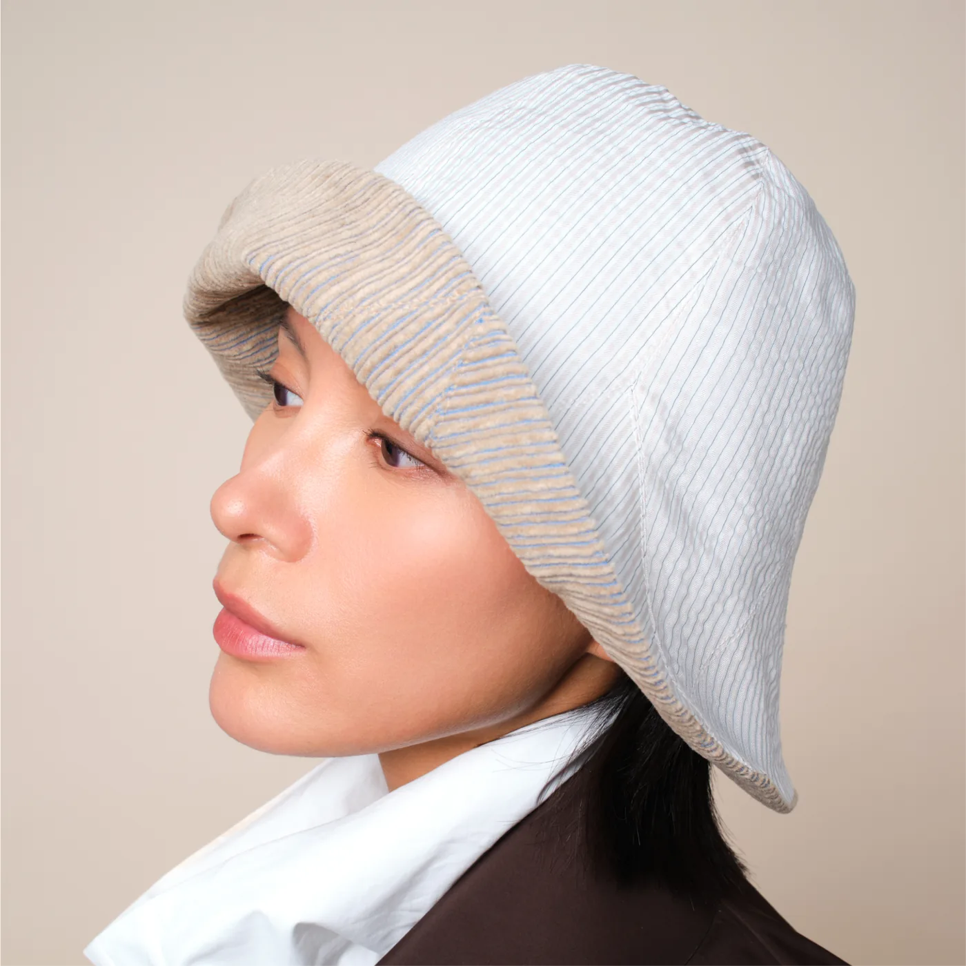 A clean, cylindrical profile akin to a bucket hat. Pairs perfectly with minimalist styles.外观接近渔夫帽。整体轮廓干净,适合搭配简化的穿搭结构。