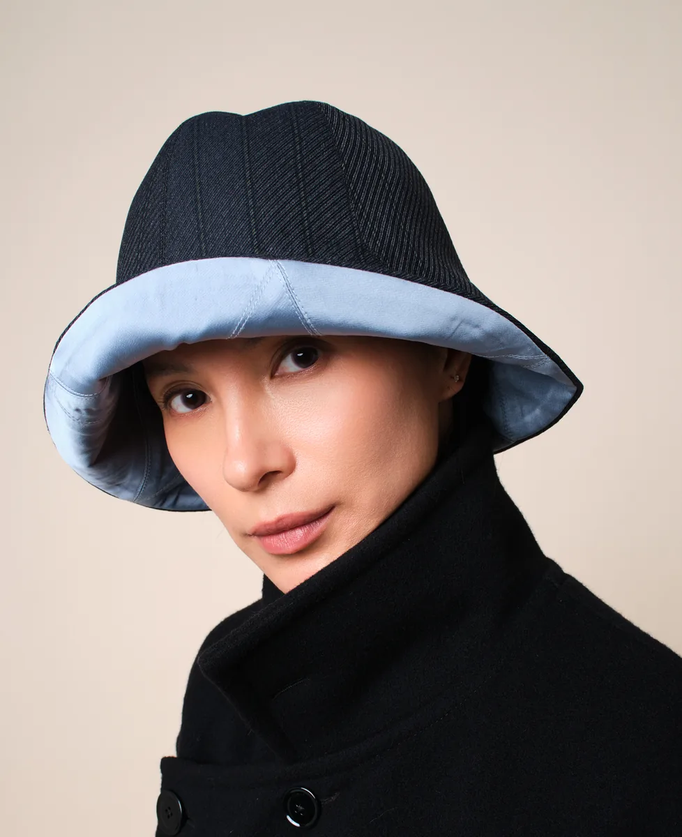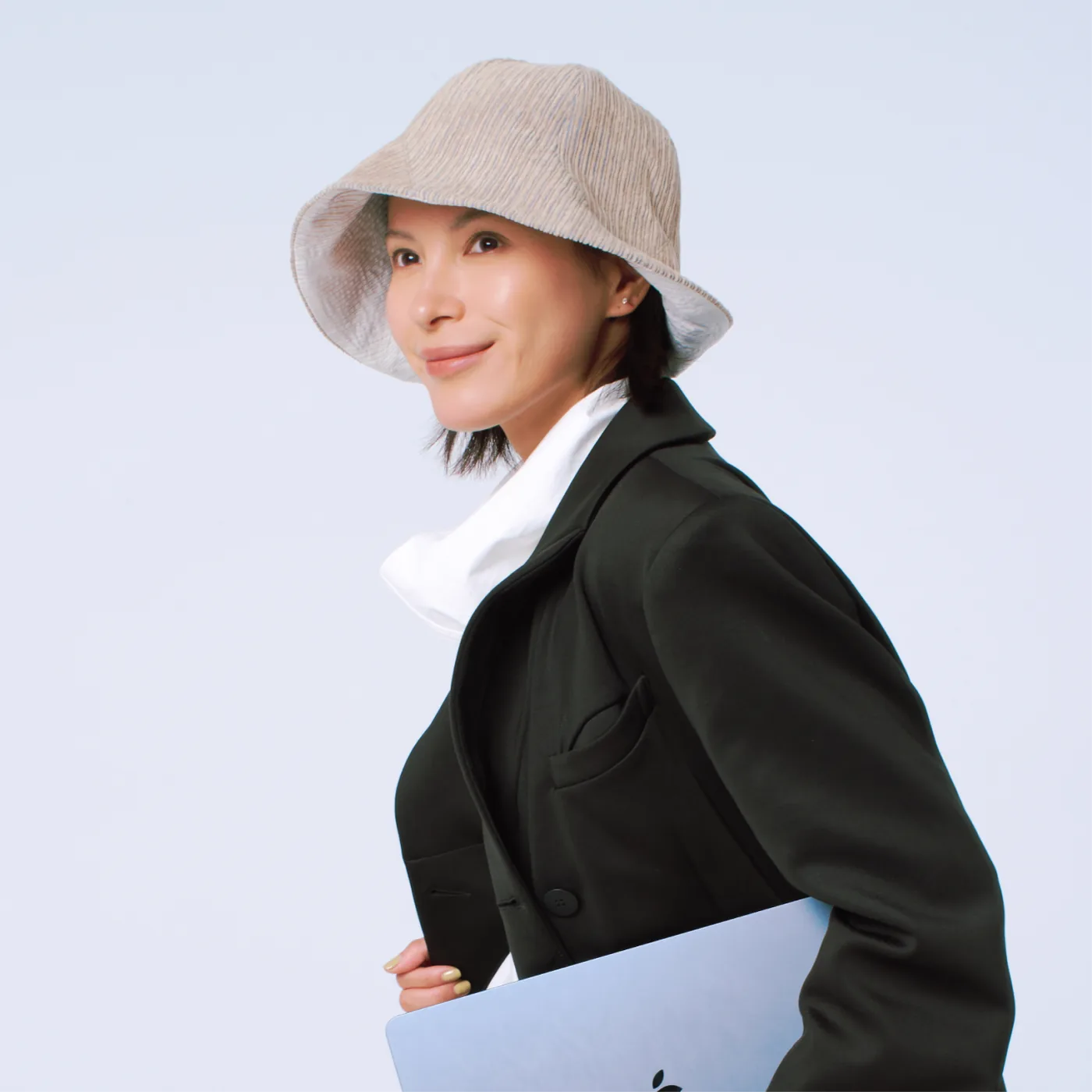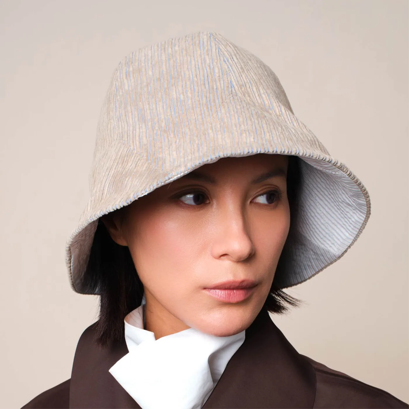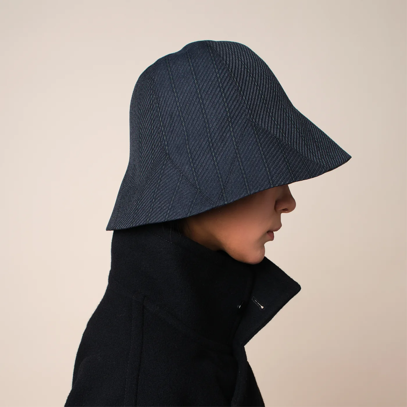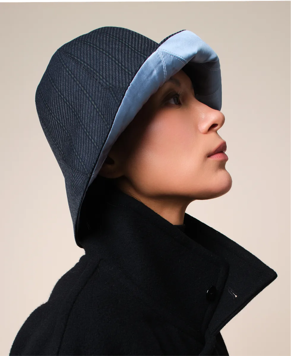 A clean, cylindrical profile akin to a bucket hat. Pairs perfectly with minimalist styles.外观接近渔夫帽。整体轮廓干净,适合搭配简化的穿搭结构。